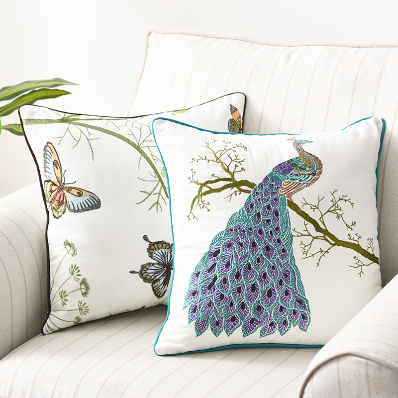 3D Embroidery Flower, Bird & Butterfly Cushion Cover